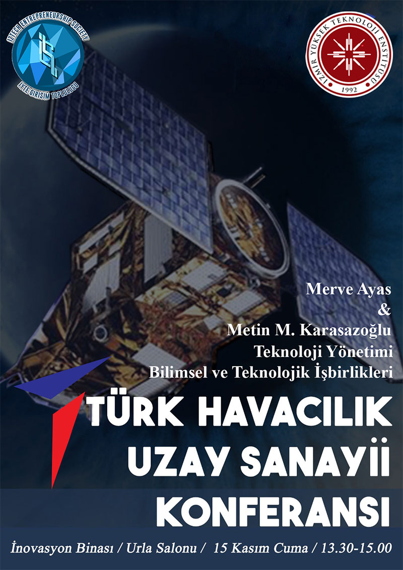İYTE Girişim Topluluğu tarafından Enstitümüzde havacılık uzay sanayideki gelişmeler ve havacılıkta teknolojinin kullanımı gibi başlıkları içerecek olan, Türk Havacılık Uzay Sanayi Konferansı 15 Kasım Cuma günü 13:30-15:00 saatleri arasında gerçekleşecektir. Bilimsel ve teknolojik iş birliği uzmanı Merve Ayas ve teknoloji yönetim danışmanı Metin M. Karasazoğlu, çalışmaları doğrultusunda bilgilendirme sunumları yapacaklardır.