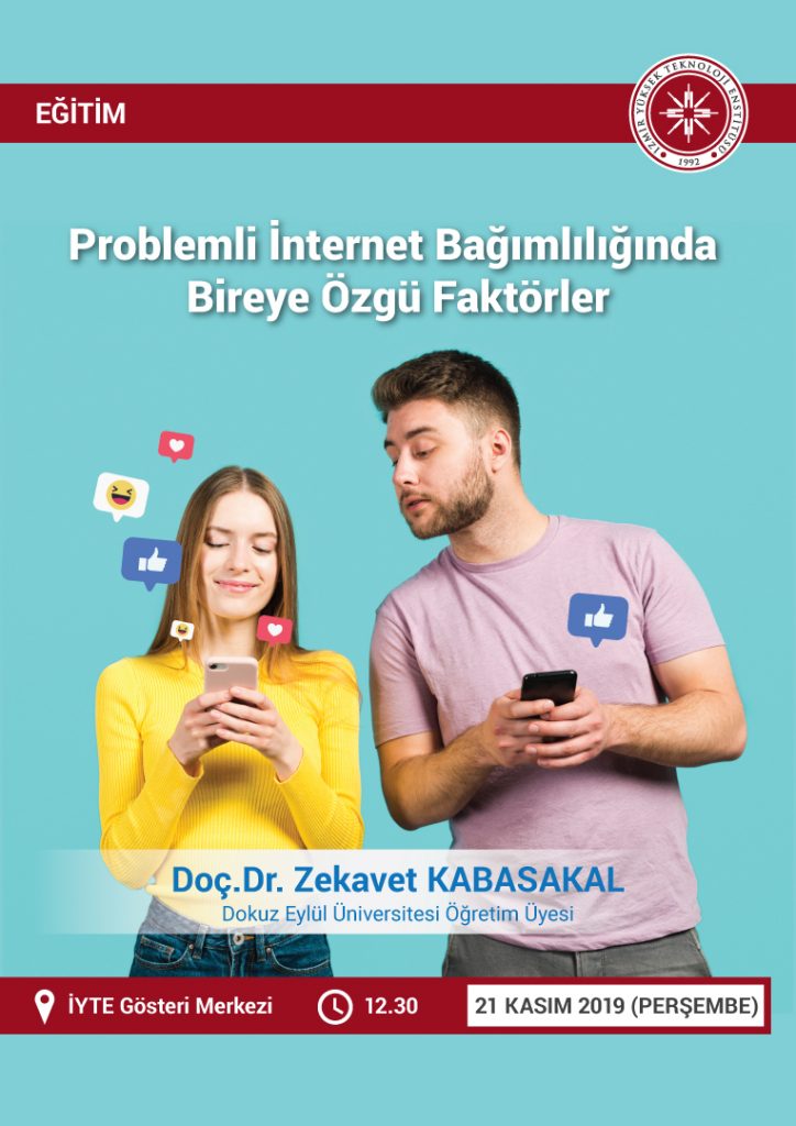 Değerli İYTE’liler, Enstitümüzde, İzmir Üniversiteleri Platformunca Dijital Vatandaşlık başlığı altında; Dokuz Eylül Üniversitesi Öğretim Üyesi Doç.Dr. Zekavet KABASAKAL tarafından “Problemli İnternet Bağımlılığında Bireye Özgü Faktörler” konulu eğitim verilecektir.